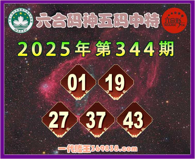 344期:『六合码神』 🧏‍♀️五码中特🧏‍♀️【01.19.27.37.43】开:27