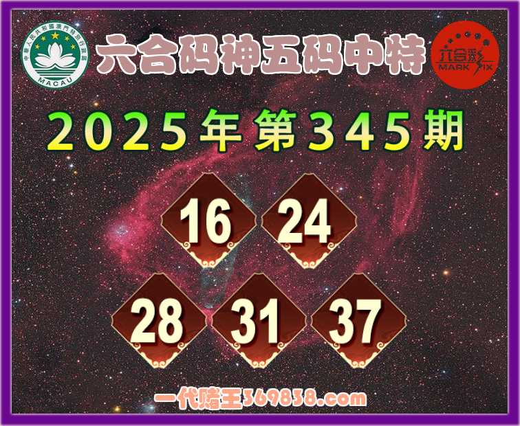 345期:『六合码神』 🧏‍♀️五码中特🧏‍♀️【16.24.28.31.37】开:24